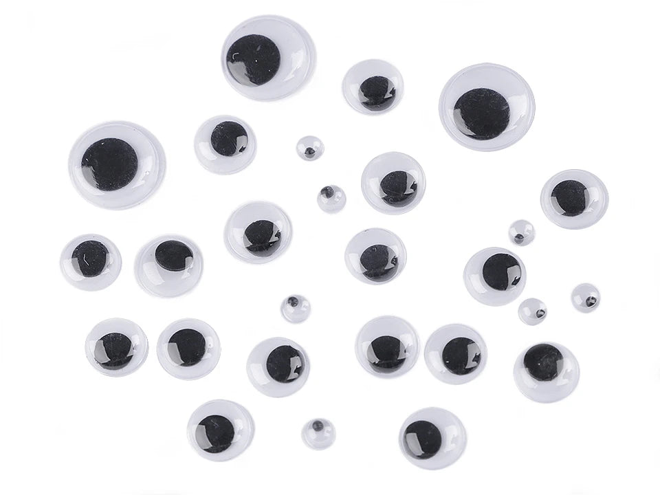 Jautras un radošas kustīgās acis ar pašlīmējošu pamatni, kas piešķir dzīvīgumu jebkuram rokdarbu projektam. Pateicoties kustīgajai melnajai zīlītei, izstrādājumi iegūst rotaļīgu un izteiksmīgu izskatu.