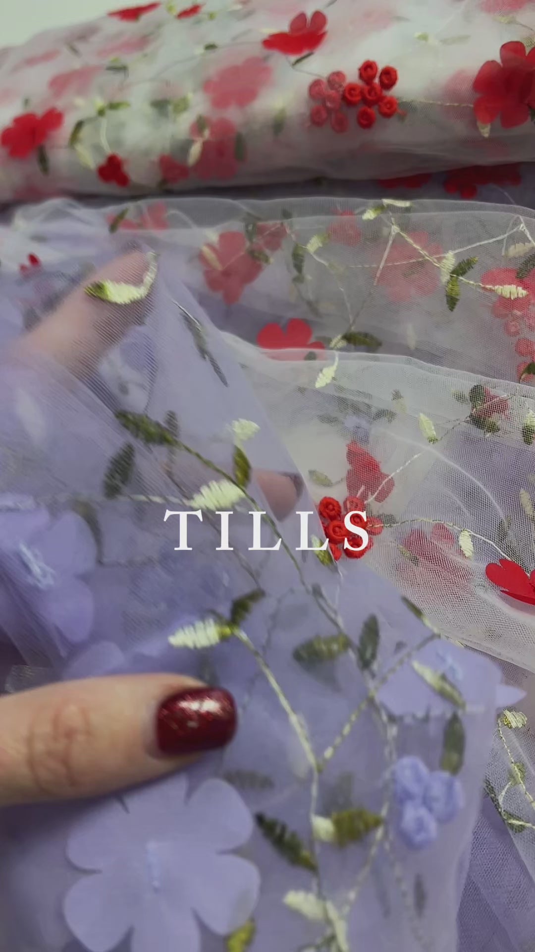 Õrn ja õhuline tikkidega tüll (mesh) kangas lillemustriga, mis annab riietele ja aksessuaaridele romantilise ning naiseliku meeleolu. Peen lilletikand läbipaistval netopõhjal loob kerge, elegantse tekstuuri efekti, mis paistab eriti ilus välja liikumisel.
