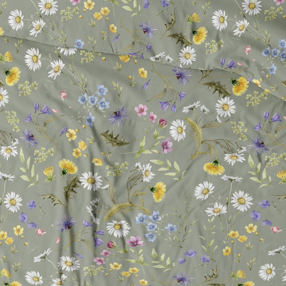 100% medvilninis audinys – pievų gėlės ant žalio fono 125 g/m²