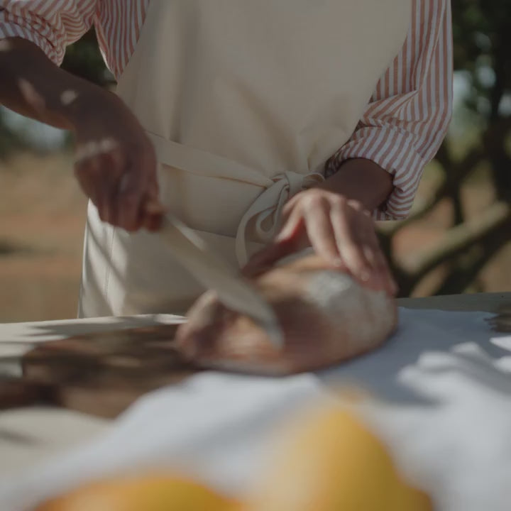 Aukštos kokybės pilno ilgio prijuostė iš Fairtrade sertifikuotos medvilnės. Storas medvilnės drill audinys yra atsparus, malonus dėvėti ir tinkamas intensyviam naudojimui dirbtuvėse, virtuvėje ar kūrybiniuose projektuose.