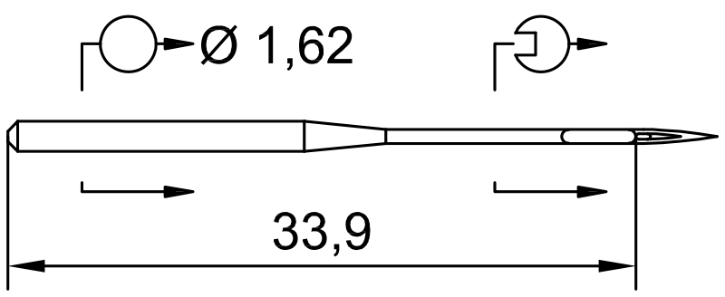• SUK – vidēji apaļš adatas gals maigai trikotāžas apstrādei