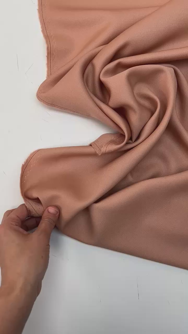 Ar 260 g/m² blīvumu audums ir vidēji smags un stingrs, padarot to lieliski piemērotu uzvalkiem, jakām, kostīmiem, vestēm un klasiskām biksēm. Smalkais bēšais tonis piešķir apģērbam izsmalcinātību un universālu pielietojumu gan ikdienā, gan svinīgos tērpos.