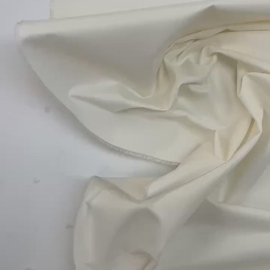 Itālijā ražots viegls un gluds viskozes–zīda tvila audums maigi baltā, krēmīgā tonī ar elegantu kritumu. Audums ir elpojošs, patīkams ādai un nestiepjas, lieliski piemērots plūstošām formām. Ideāla izvēle blūzēm, kleitām, svārkiem un vieglam ikdienas apģērbam.