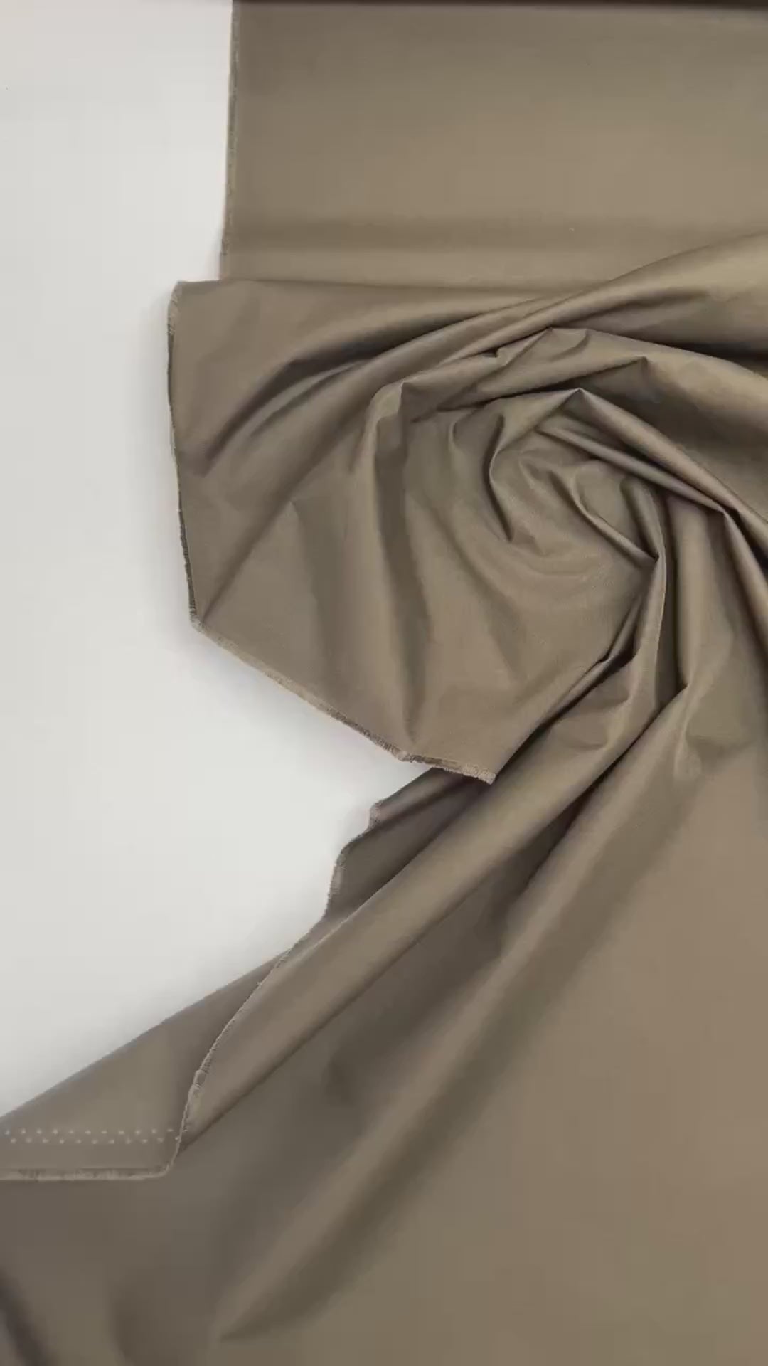 Japānā ražots gluds satīna–tvila audums pelēkā tonī ar vieglu spīdumu un labu noturību. Audums ir vidēji blīvs, ūdensizturīgs un nestiepjas, saglabājot formu un elegantu kritumu. Piemērots jakām, virsdrēbēm un strukturētiem apģērba dizainiem.