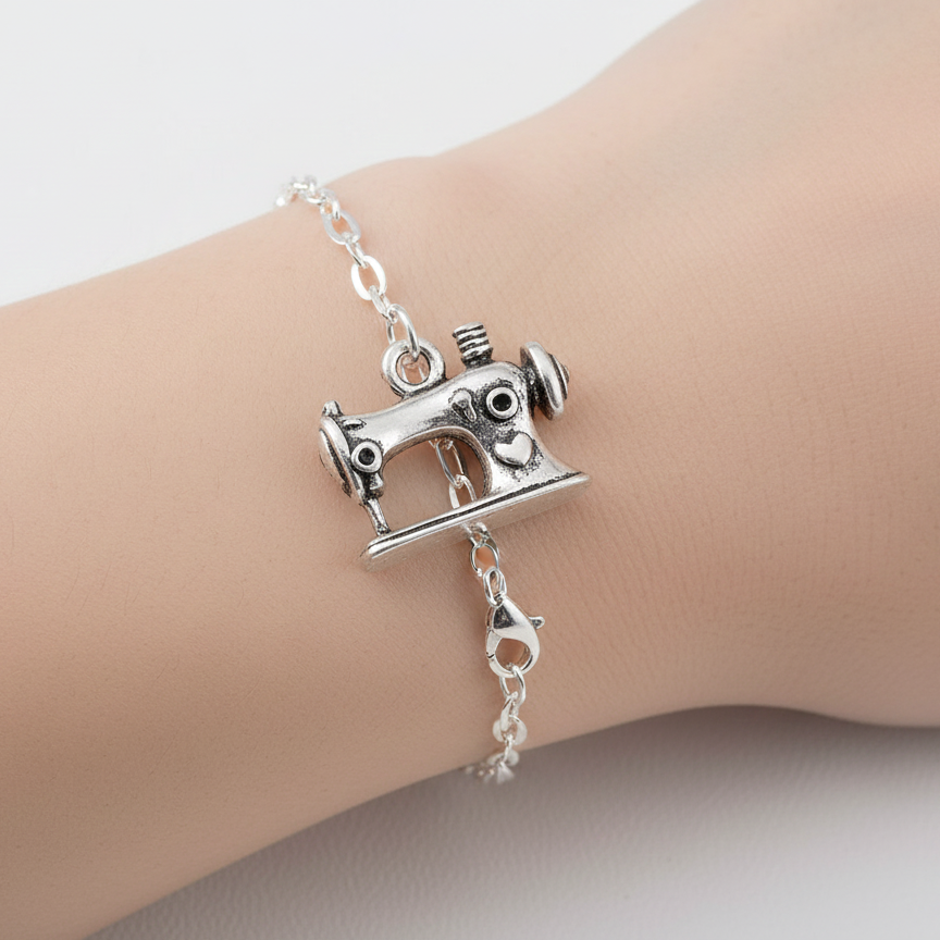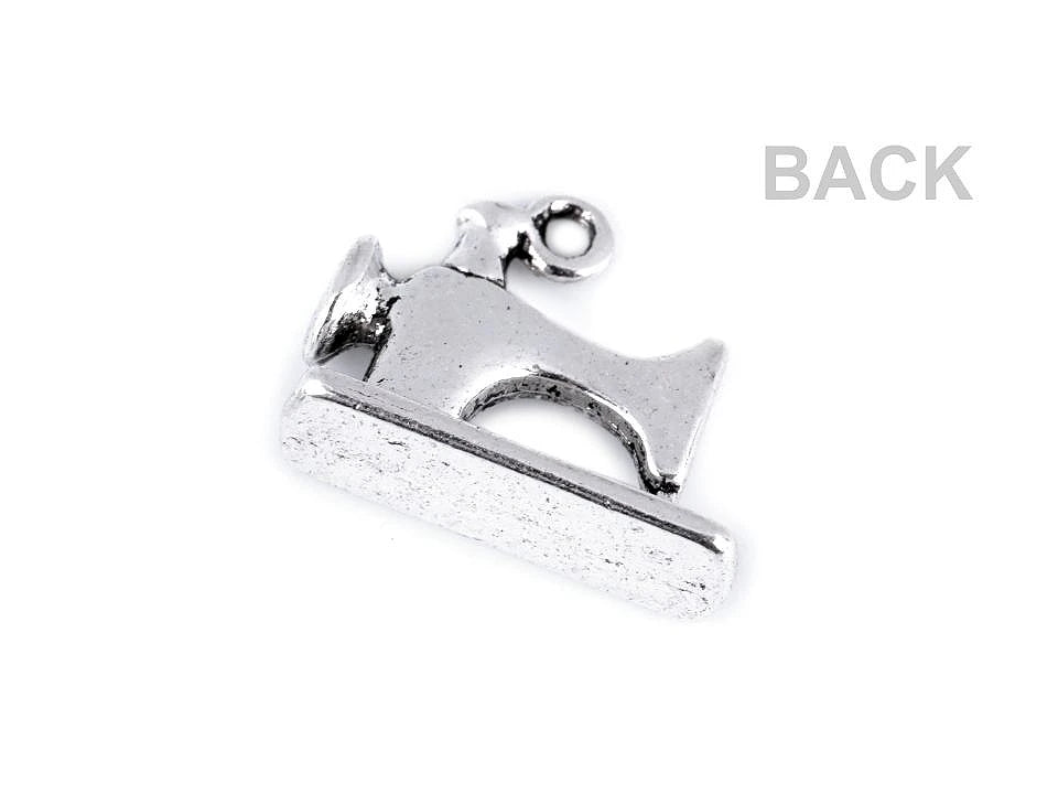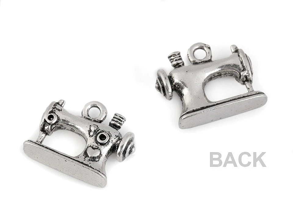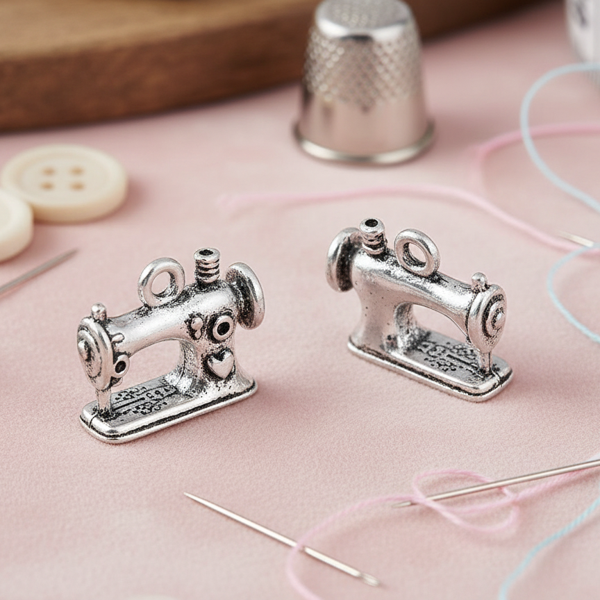 Šarmants metāla dekors šujmašīnas formā, kas lieliski papildinās šūšanas un rokdarbu projektus. Ideāli piemērots rotu izgatavošanai, aksesuāriem, dāvanu noformēšanai un radošiem DIY darbiem.