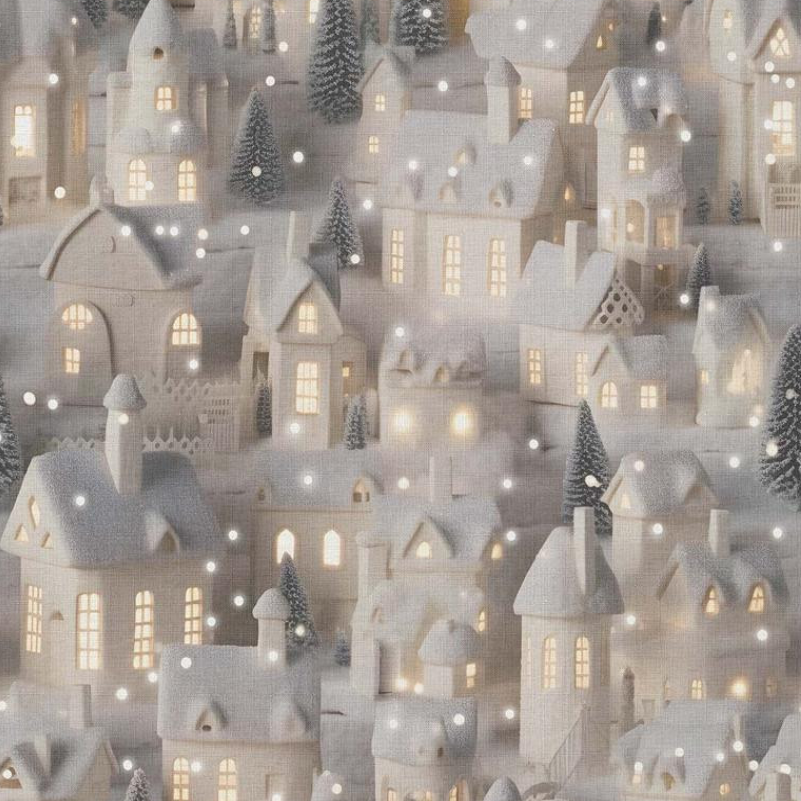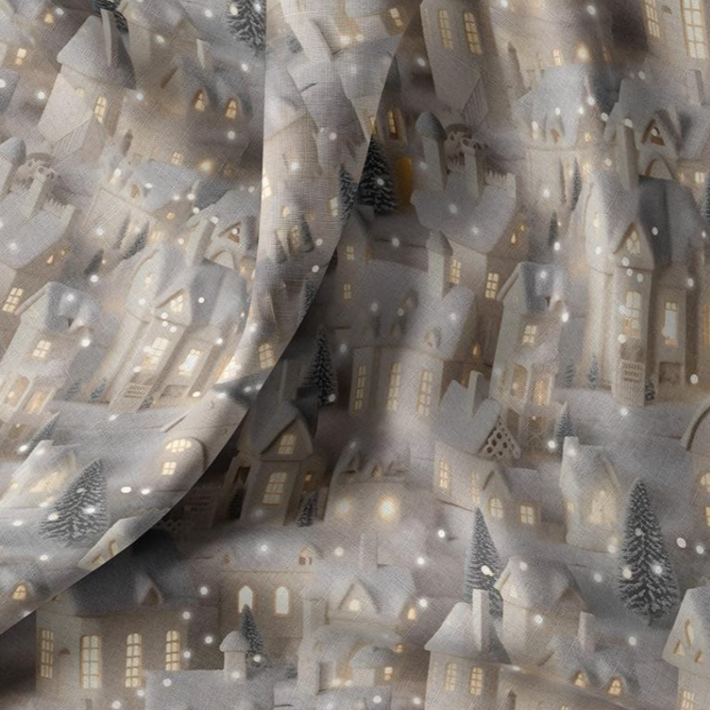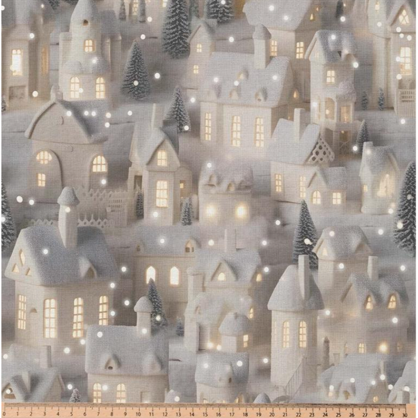 Premium 100% kokvilnas audums-Ziemassvētku namiņi 115 g/m²