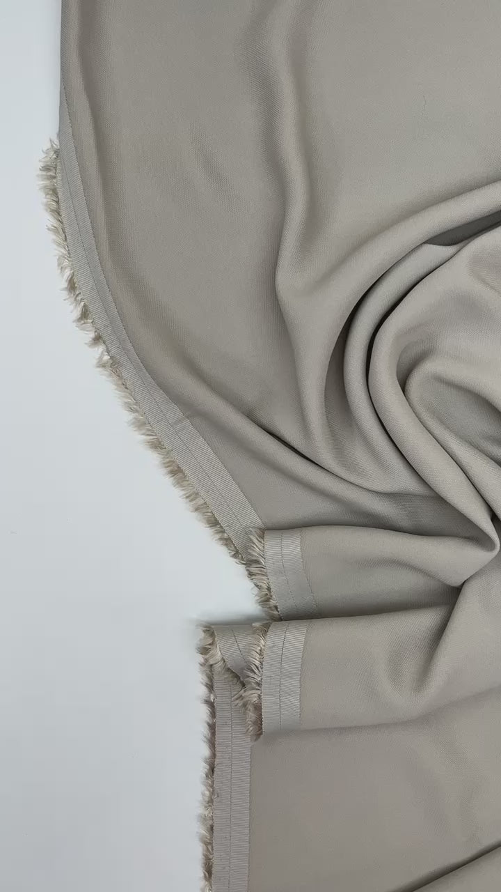 Šis kvalitatīvais audums ar maigi pelēcīgi bēšo toni iemieso klasisku eleganci un universālu pielietojamību. Lieliski piemērots gan kleitām un blūzēm, gan klasiskām jakām vai kostīmiem – veidojiet gan ikdienas, gan svētku tērpus ar itāļu šarmu!