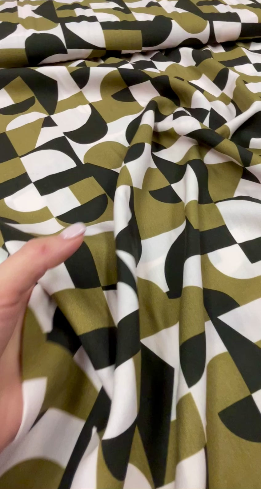 100% Viskozes audums-haki, melnbalts raksts 125 g/m²