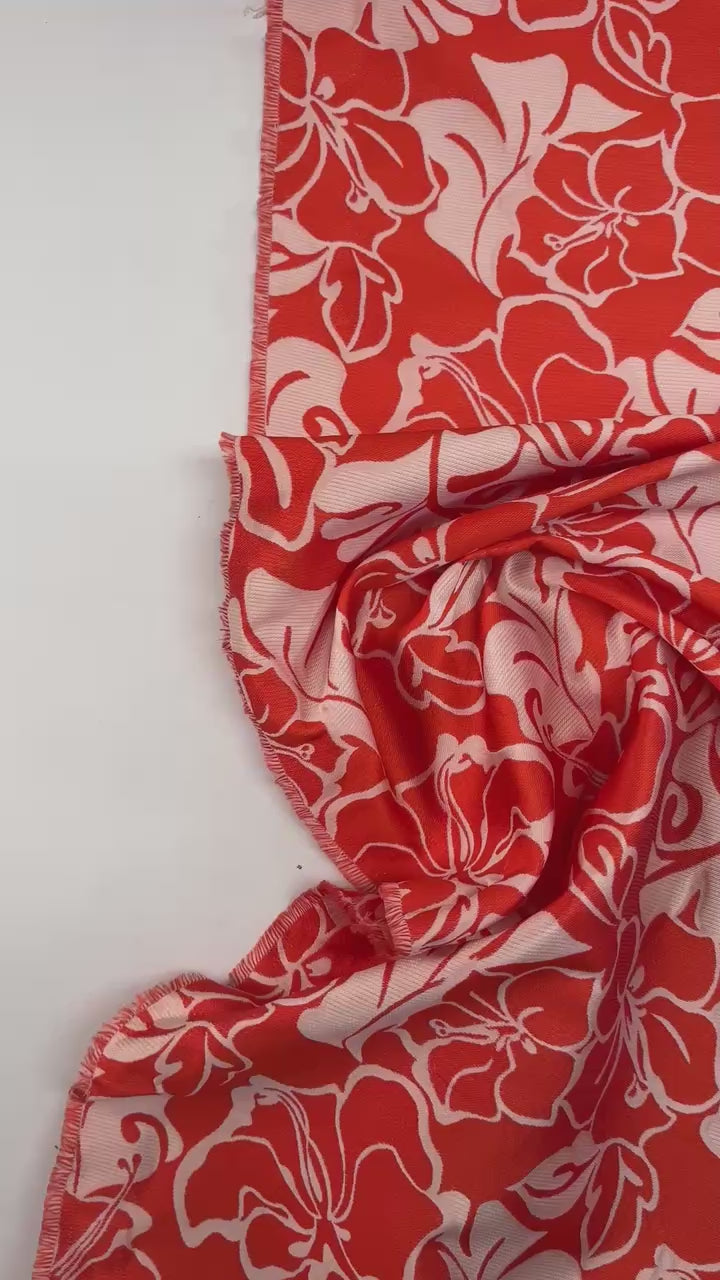 Zīda žakards-sarkans un bēšs ziedu raksts 105 g/m²