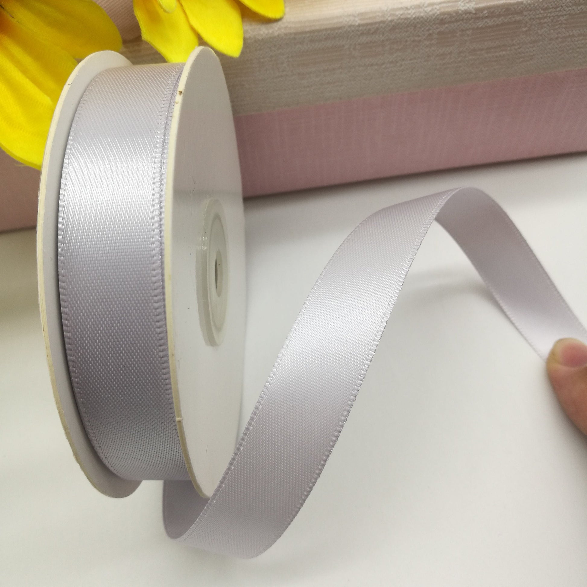 Satīna lenta ir spīdīga vienā pusē un matēta no otras puses.